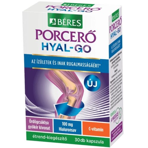 A Béres Porcerő HYAL-GO kapszula komplex étrend-kiegészítő készítmény hialuronsavval, ördögcsáklya gyökér kivonattal, valamint C-vitaminnal.