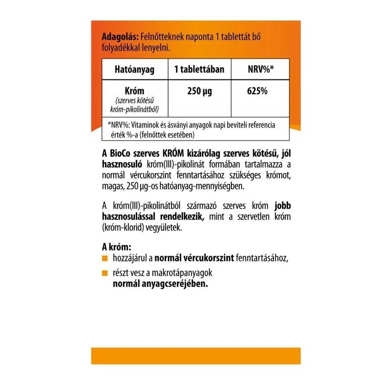BioCo Szerves KRÓM 250 µg – Magas hatóanyag-tartalmú étrend-kiegészítő