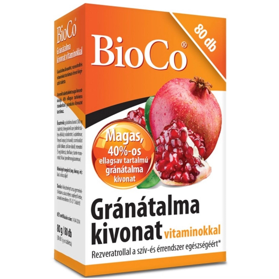 A BioCo Gránátalma kivonat vitaminokkal készítmény napi ajánlott adagja 2 tabletta, bő folyadékkal kell lenyelni.