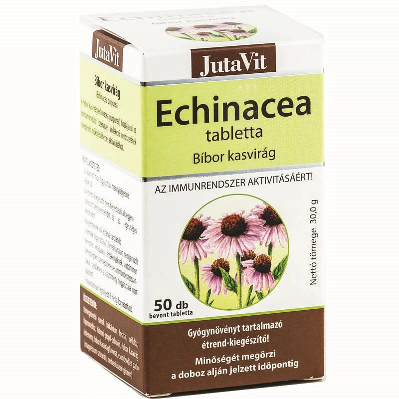 A JutaVit készítménye tablettánként 240 mg bíbor kasvirágot tartalmaz, a növényi őrlemény és a koncentrált kivonat kombinációjával biztosítva a hatóanyagok széles spektrumát.