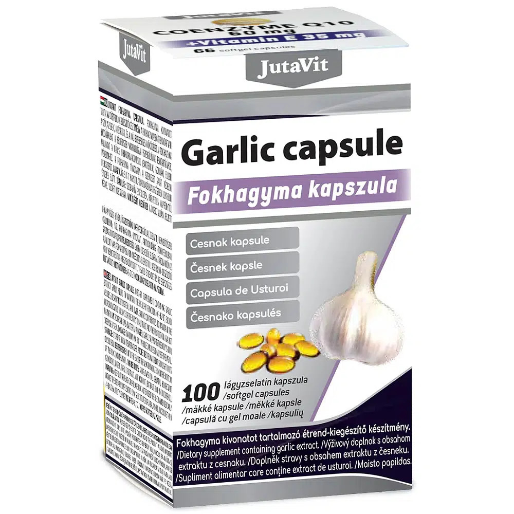Növényi hatóanyagai részt vesznek a vérzsírszintek (koleszterin, trigliceridek) egyensúlyának megőrzésében, így támogatva az érrendszer védelmét. Emellett a fokhagyma elősegíti a szervezet természetes védekezőképességét a káros mikroorganizmusokkal (baktériumokkal, gombákkal) szemben, hozzájárulva a bélrendszer mikrobiológiai egyensúlyának fenntartásához. A JutaVit készítménye kapszulánként 5 mg allicint tartalmaz, gazdaságos, 100 darabos kiszerelésben.