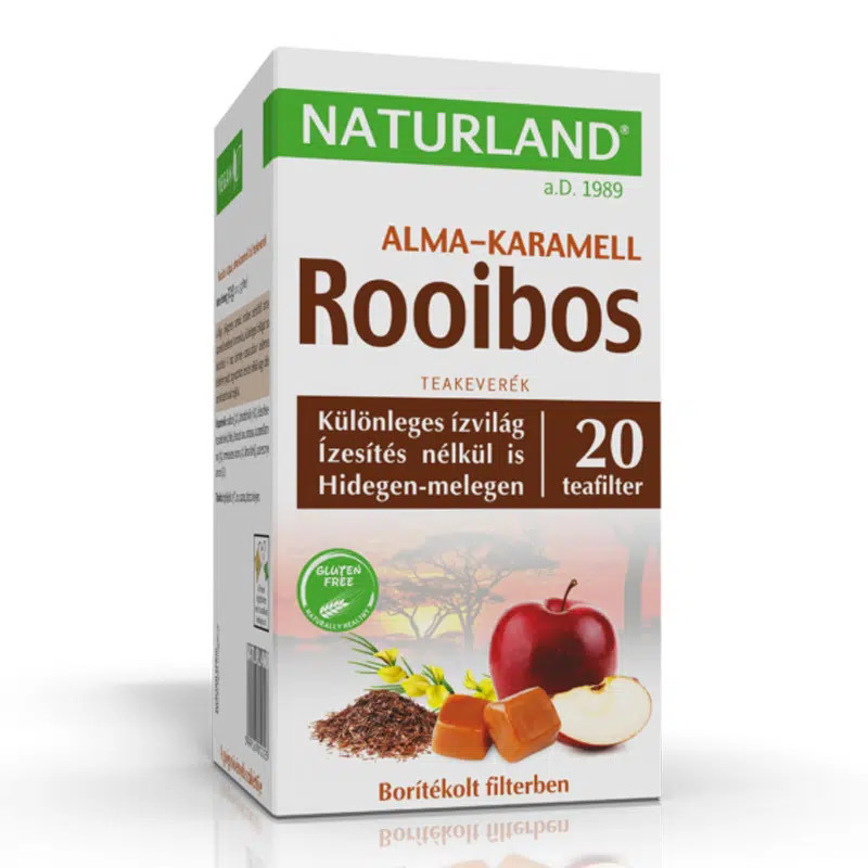 A Naturland Alma-Karamell-Rooibos teakeverék egy ízletes, kényeztető különlegesség. A lágy, jellegzetes zamatú rooibos cserje és az édes alma-karamell ízesítés találkozása harmonikus, egyedi ízvilágot teremt.
