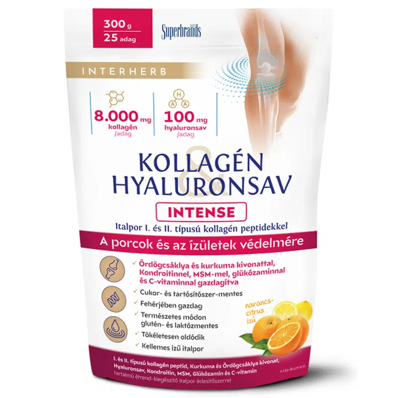 Az Interherb Kollagén & Hialuronsav Intense narancs-citrus ízű italpor étrend-kiegészítő készítmény, amely a porcok és ízületek természetes alkotóelemei között megtalálható összetevőket tartalmaz.